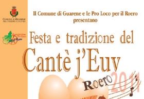 Il Comune di Guarene e l'Associazione Pro Loco per il Roero ripropongono la tradizionale festa del“Cantè j'euv”, giunta quest'anno all' XI edizione.Come gli anni scorsi la manifestazione, legata all'antico rito della questua delle uova, apre i suoi orizzonti al di là dei confini roerini, coinvolgendo le province di Cuneo, Asti e Alessandria, con decine di Pro Loco impegnate nell'organizzazione.