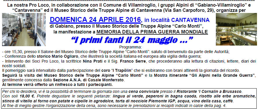 » Villamiroglio (AL): Ricordando la grande guerra