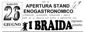 SABATO 26 GIUGNO 2010  Apertura stand enogastromici con musiche de I Braida